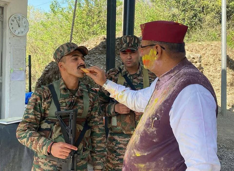 सैनिक कल्याण मंत्री गणेश जोशी ने होली के पावन अवसर पर भारत माँ की सेवा में तैनात अपने सैनिक भाइयों को तिलक लगाया