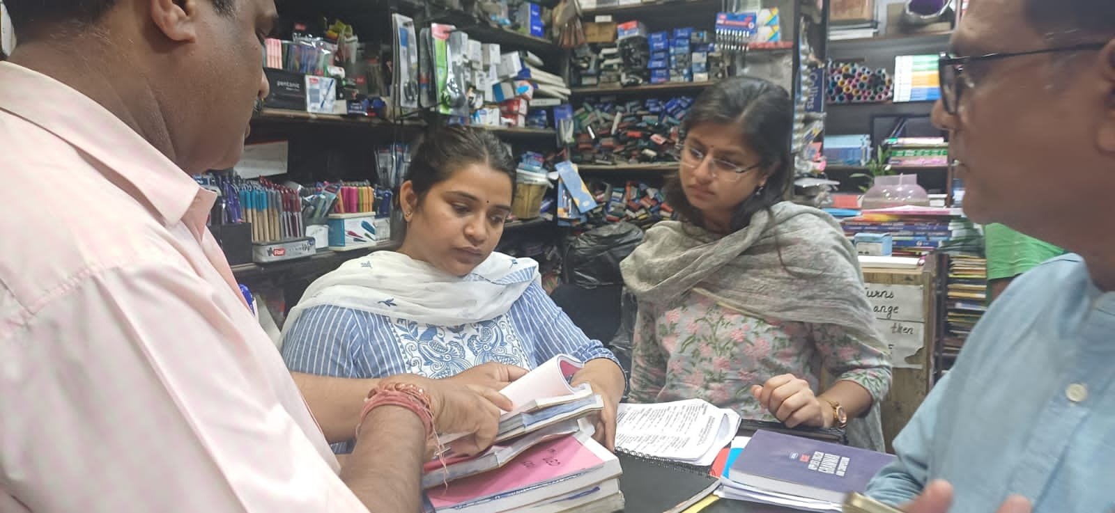 संयुक्त मिनिस्टर गौरी प्रभात उप जिलाधिकारी कुमकुम जोशी ने छापामारी अभियान में बड़े हुए मूल्य पर किताबें बेचने, बिना बिल के किताबें नोटबुक तथा अन्य सामान बेचने जीएसटी की चोरी, बिना बार कोडिंग के किताबें बेचने आदि शिकायतों के क्रम में यूनिवर्सल बुक हाउस की समस्त बिल बुक सीज कर ली गई हैं साथ ही बिना बार कोडिंग वाली किताबें सीज कर कार्रवाई प्रस्तावित की जा रही हैं…
