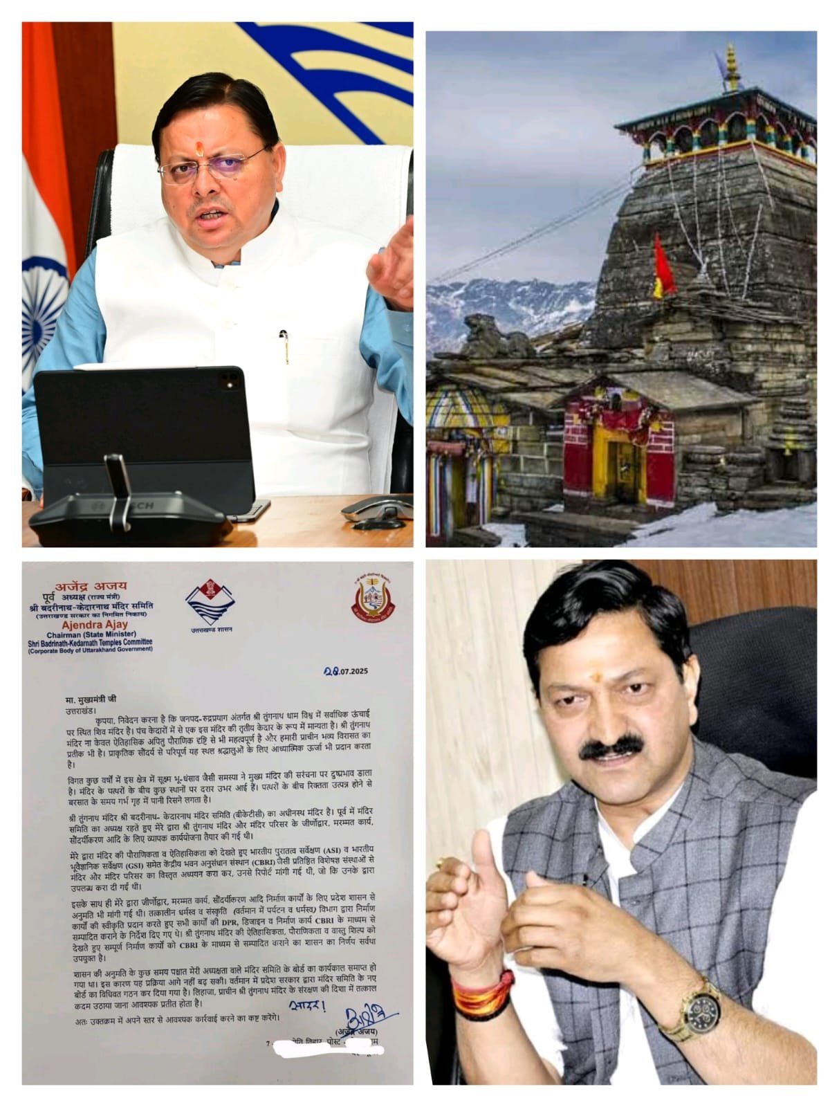 शिवभक्तों की आस्था का सर्वोच्च शिखर तुंगनाथ मंदिर भू-धंसाव से जूझ रहा, संरक्षण के लिए मुख्यमंत्री से मिले बीकेटीसी के पूर्व अध्यक्ष अजेंद्र अजय