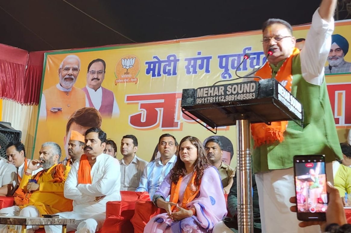 हरियाणा के पूर्व मुख्यमंत्री मनोहर लाल खट्टर और सांसद प्रत्याशी मनोज तिवारी ने भी जनसभा को सम्बोधित किया