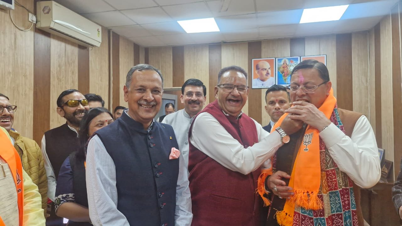 देहरादून, 14 नवम्बर। कैबिनेट मंत्री गणेश जोशी आज भाजपा प्रदेश कार्यालय में मुख्यमंत्री पुष्कर सिंह धामी को बिहार चुनाव में बीजेपी की ऐतिहासिक जीत पर मिठाई खिलाकर बधाई एवं शुभकामनाएँ देते हुए इस विजय को लोकतंत्र की जीत बताया। मंत्री गणेश जोशी ने बिहार विधानसभा चुनाव में एनडीए को मिली ऐतिहासिक और प्रचंड विजय पर हर्ष व्यक्त करते हुए बिहार की जनता के प्रति गहरा आभार प्रकट किया।