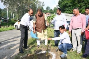 सेवा पखवाड़े के तहत प्रधानमंत्री मोदी के जन्म दिवस के अवसर पर वृक्षारोपण करते कैबिनेट मंत्री गणेश जोशी