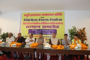 कैबिनेट मंत्री गणेश जोशी ने सोमवार को मसूरी पहुंचकर एक निजी होटल में मसूरी प्रतापनगर जनकल्याण समिति द्वारा टिहरी झील में तैराकी का कीर्तिमान स्थापित करने वाले पिता पुत्रों के सम्मान में आयोजित सम्मान समारोह में बतौर मुख्य अतिथि प्रतिभाग किया