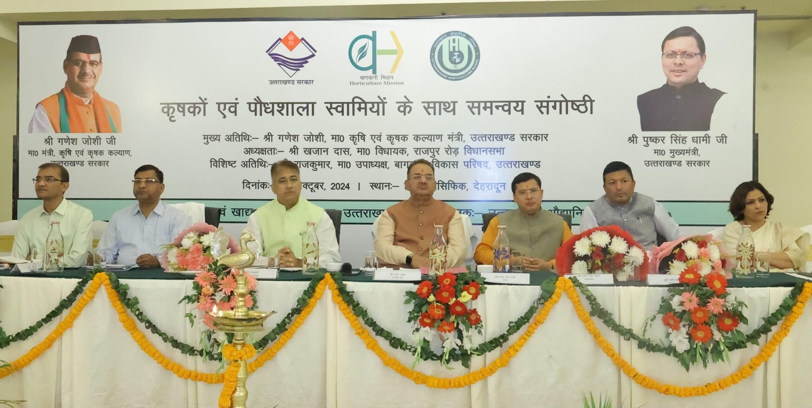 सूबे के कृषि मंत्री गणेश जोशी ने आज मंगलवार को देहरादून के एक निजी होटल में आयोजित कृषकों एवं पौधशाला स्वामियों के साथ समन्वय संगोष्ठी कार्यक्रम में बतौर मुख्य अतिथि प्रतिभाग किया। इस अवसर पर बागवानी मिशन परिषद के उपाध्यक्ष राजकुमार भी उपस्थित रहे। इस किसान संगोष्ठी में प्रदेश के 13 जनपदों से पहुंचे कृषकों और पौधशाला स्वामियों ने भी प्रतिभाग किया। इस दौरान संगोष्ठी कार्यक्रम में बड़ी संख्या में प्रदेश के विभिन्न जनपदों से पहुंचे किसानों ने अपने सुझाव भी दिए और कृषि मंत्री के समक्ष अपनी समस्याएं भी रखी कृषि मंत्री गणेश जोशी ने मौके पर ही अधिकतर शिकायतों का निस्तारण किया और शेष शिकायतों के निराकरण हेतु अधिकारियों को निर्देशित किया। संगोष्ठी में प्रदेश भर से आए कृषकों ने कृषि मंत्री गणेश जोशी का आयोजित संगोष्ठी के लिए आभार भी जताया और प्रसन्नता व्यक्त की।