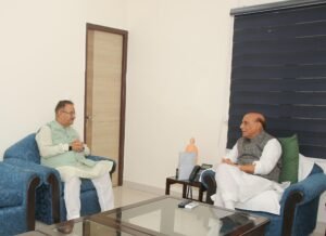 देश के रक्षा मंत्री राजनाथ सिंह से कैबिनेट मंत्री गणेश जोशी ने शिष्टाचार भेंट की